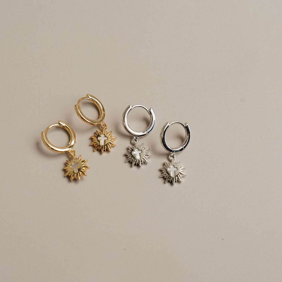 Monstrance Pearl Huggie Earrings