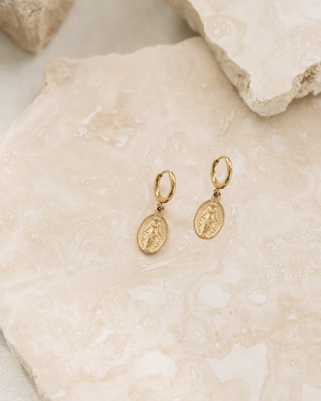 These earrings sit close to you, gently pointing your heart back to prayer, trust, and grace just as mama Mary did.