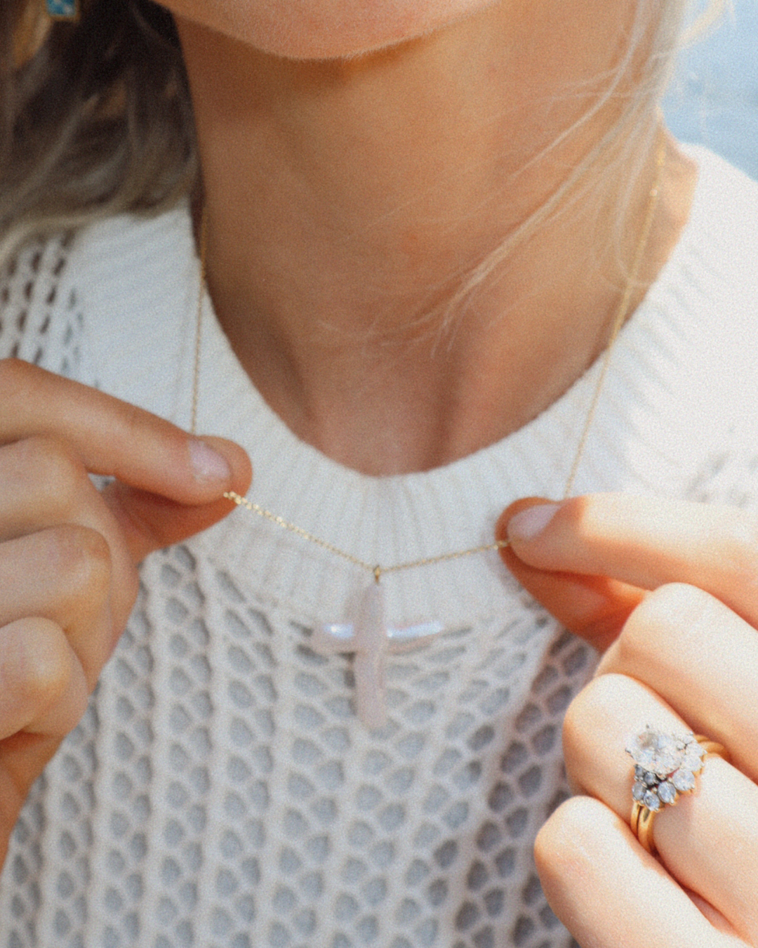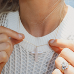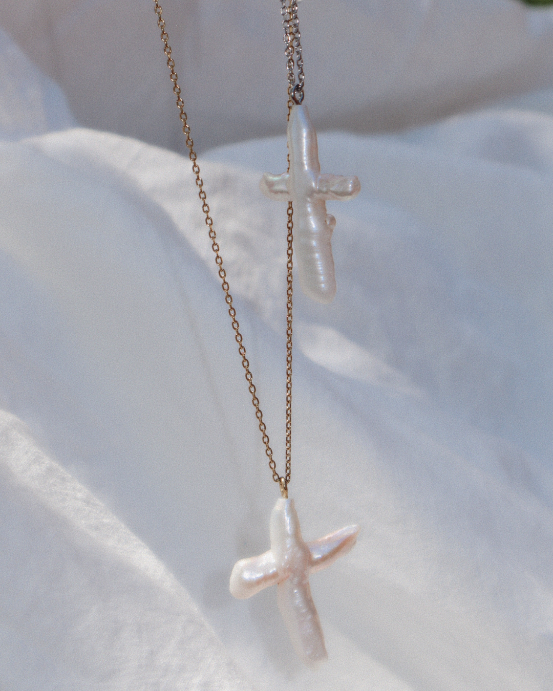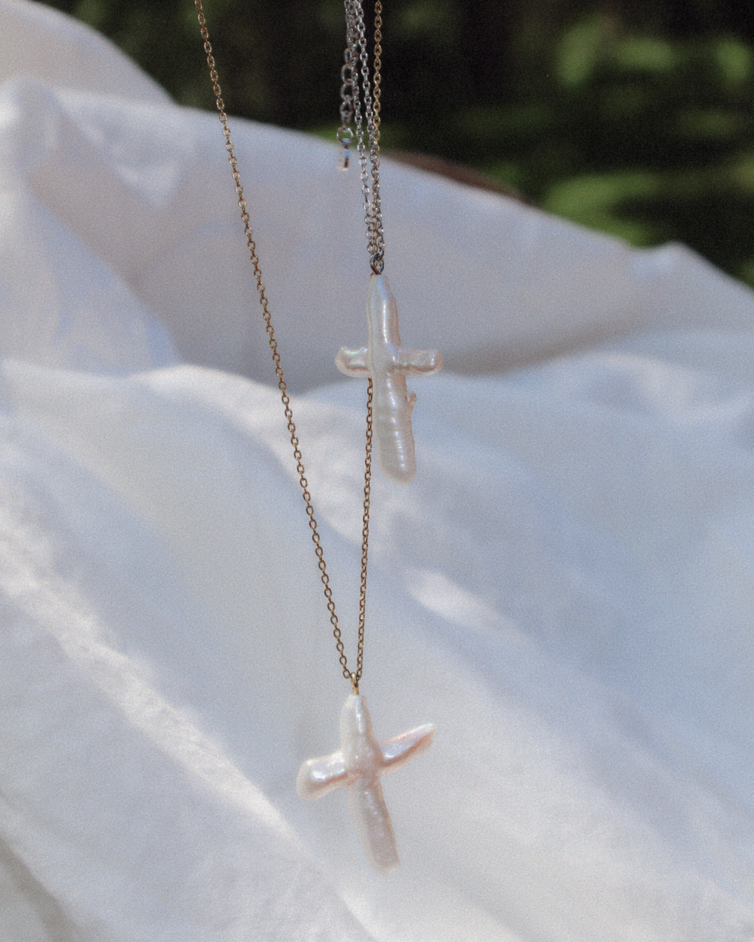 This natural pearl cross necklace is inspired by Servant of God Chiara Petrillo Corballo who’s great suffering always pointed back to the cross.