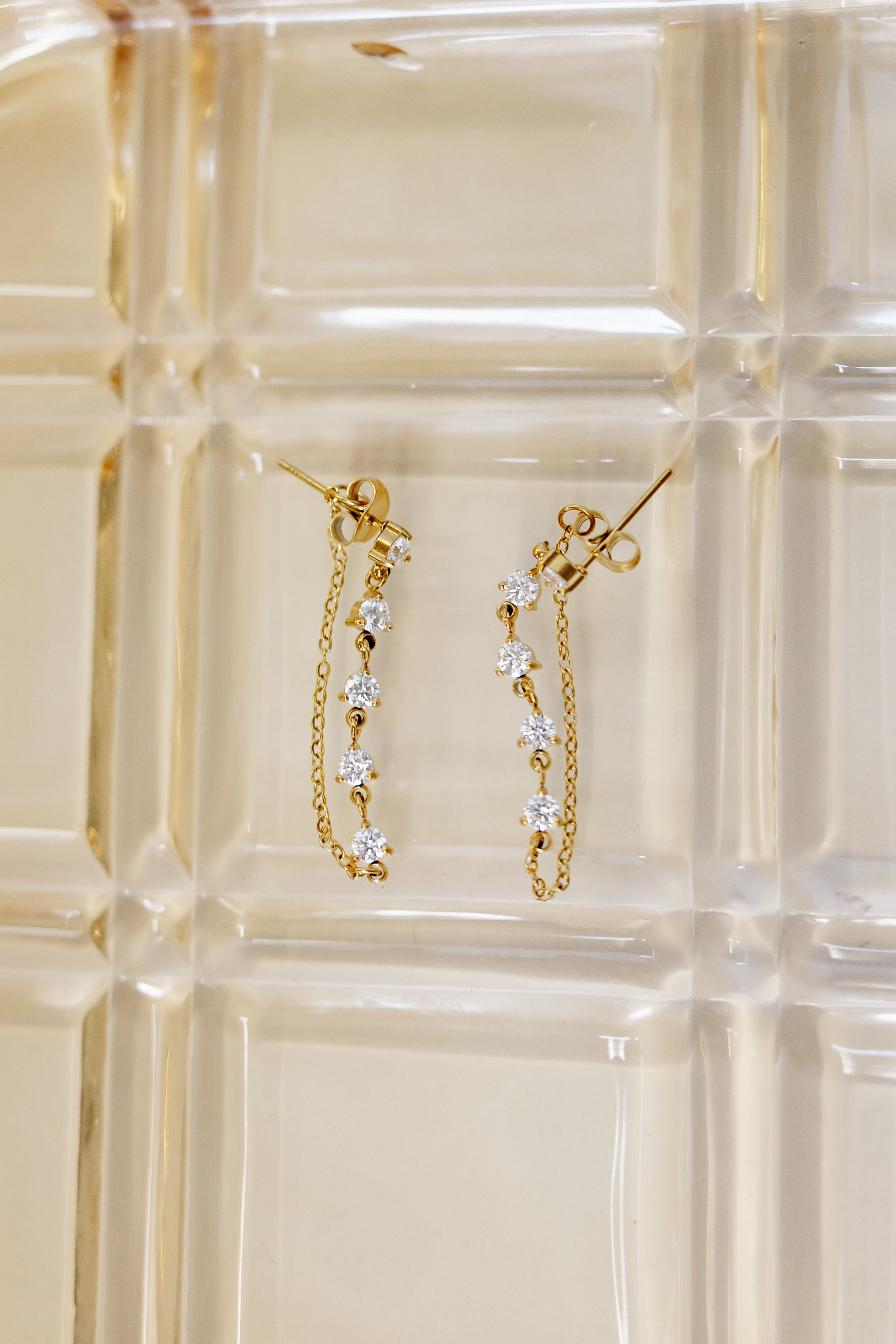 The Crystal Drop Stud Earrings are crafted with 14k gold-filled materials and finished with a subtle crystal drop for just the right amount of sparkle.