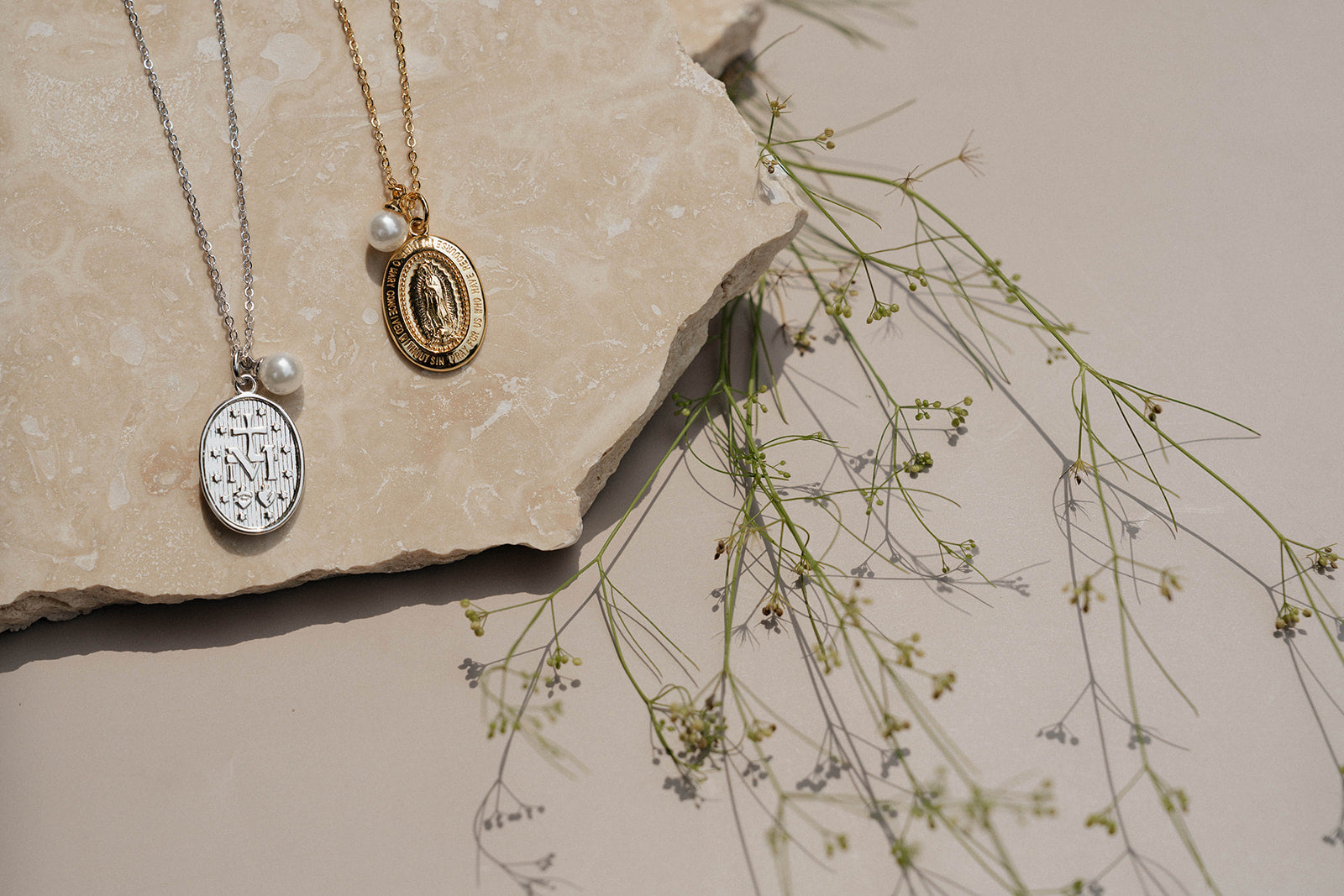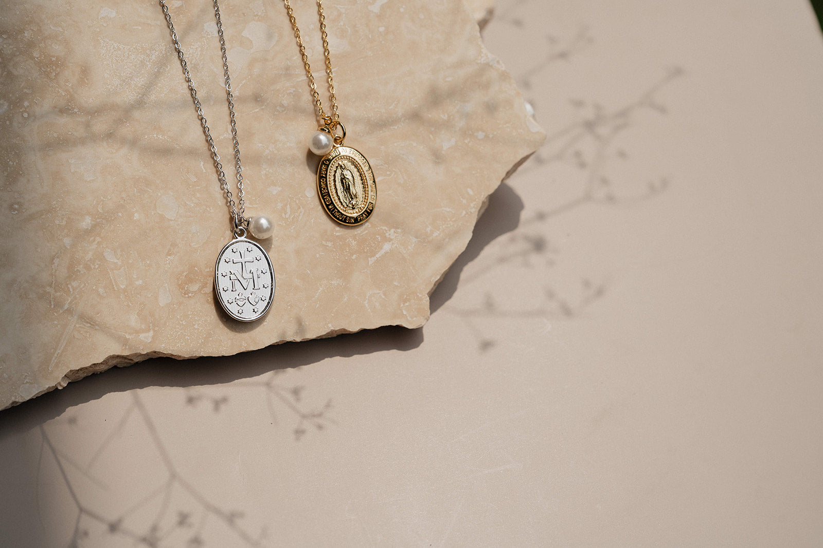 The Miraculous Medal Necklace enhances your God given beauty since it's delicately designed to capture the beauty of the Blessed Virgin Mary.